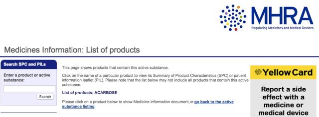 http://www.mhra.gov.uk/spc-pil/index.htm?pageID=SecondLevel&subsName=ACARBOSE