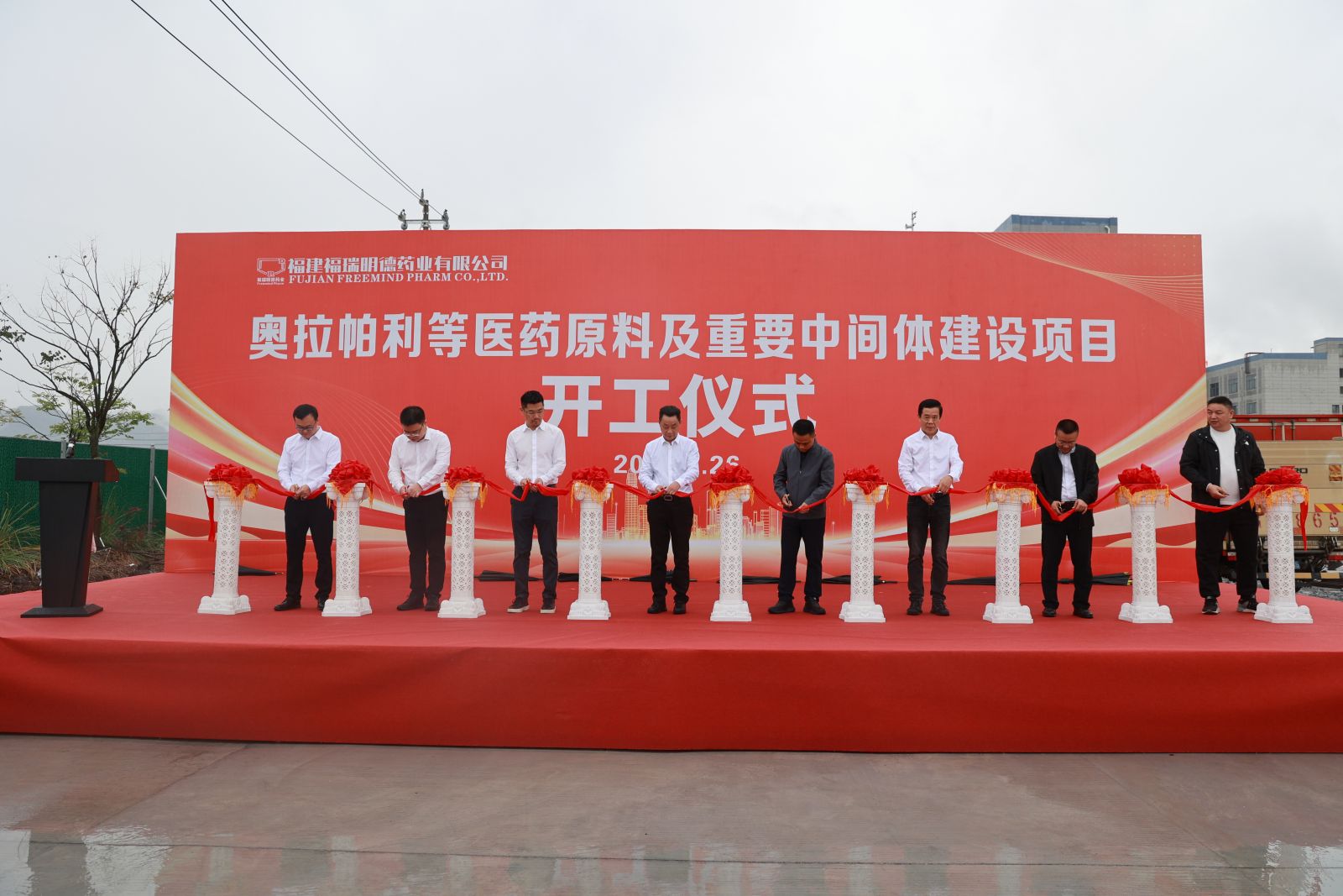 2026年3月26日,福建福瑞明德药业与音芙医药合作的奥拉帕利等医药原料及重要中间体项目,在我司二期建设地正式开工。项目总建筑面约1.4万㎡,采用绿色酶法技术,分阶段生产奥拉帕利,辅酶I等10余种原料药和医药中间体,建成后将年产217吨抗肿瘤等医药中间体,是明溪首个合成生物产业项目。福瑞明德将全力推进项目建设,助力区域医药产业升级,打造高端原料药生产新标杆。